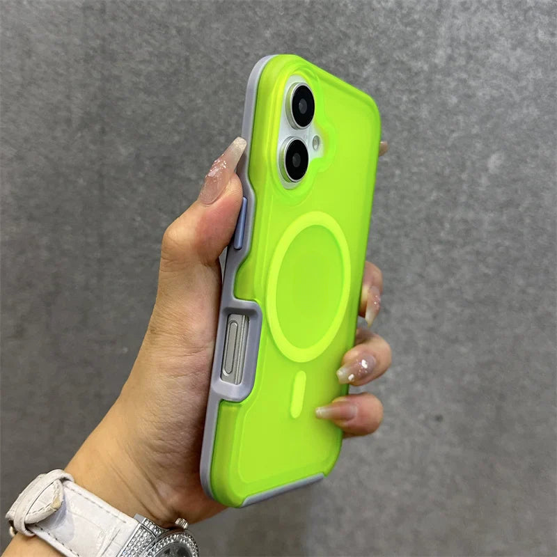 Magnetic Neon Color Matte Translucent Armor Shockproof Case For iPhone